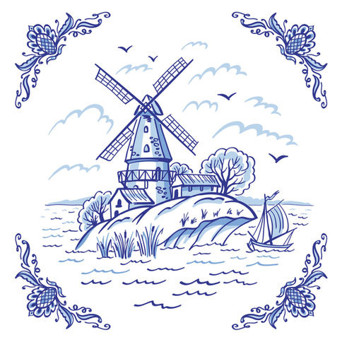 You are ordering 1 x ceramic kiln fired printed gloss finish tile mural featuring a dutch windmill over 36 tiles (0.90m x 0.90m).